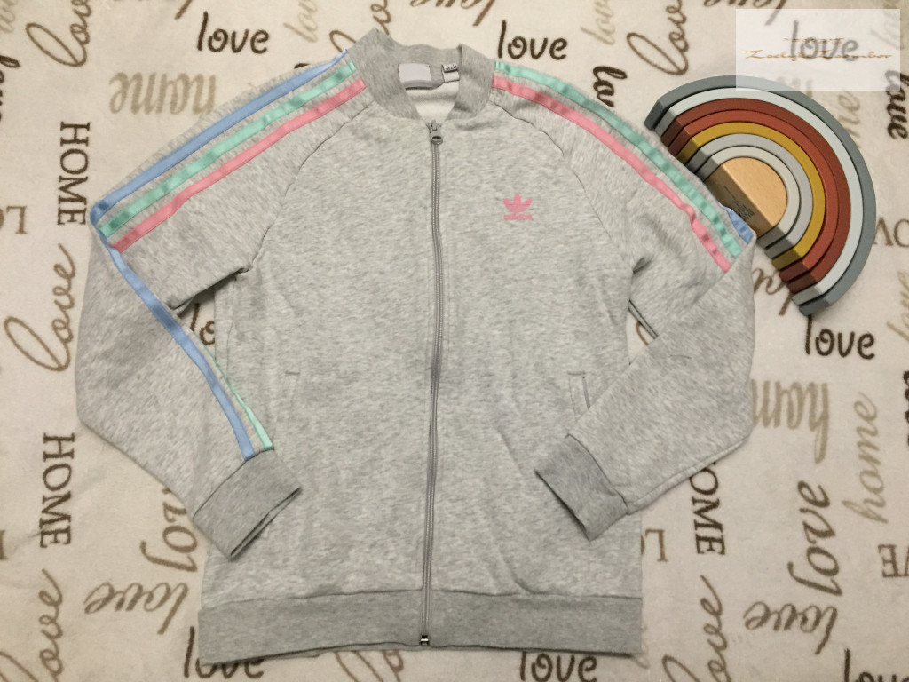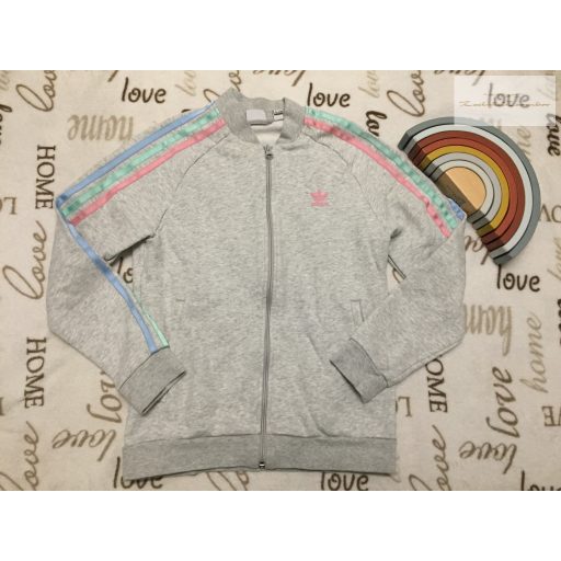 Adidas 12 -13 év 158 cm szürke , oldalt színes csíkos pamut lány felső/ pulóver - újszerű,hibátlan