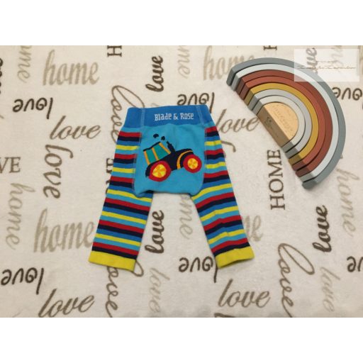 Blade§Rosa 0-6 hó traktor mintás -csíkos fiú lábfej nélküli harisnya / nadrág- újszerű,hibátlan
