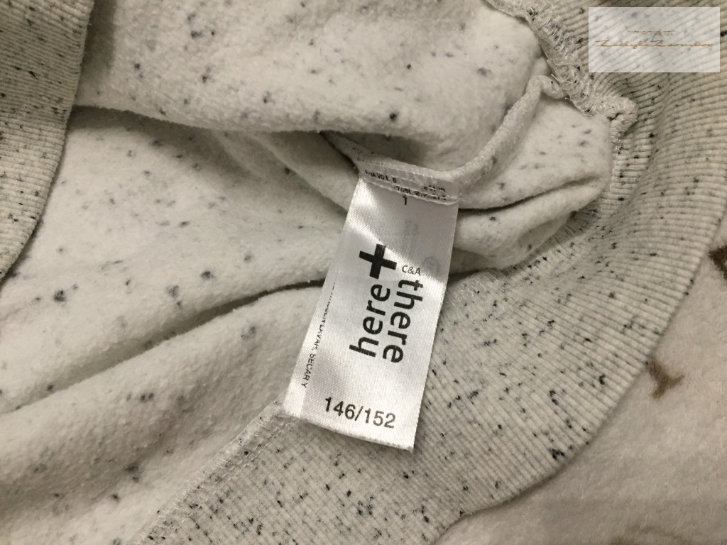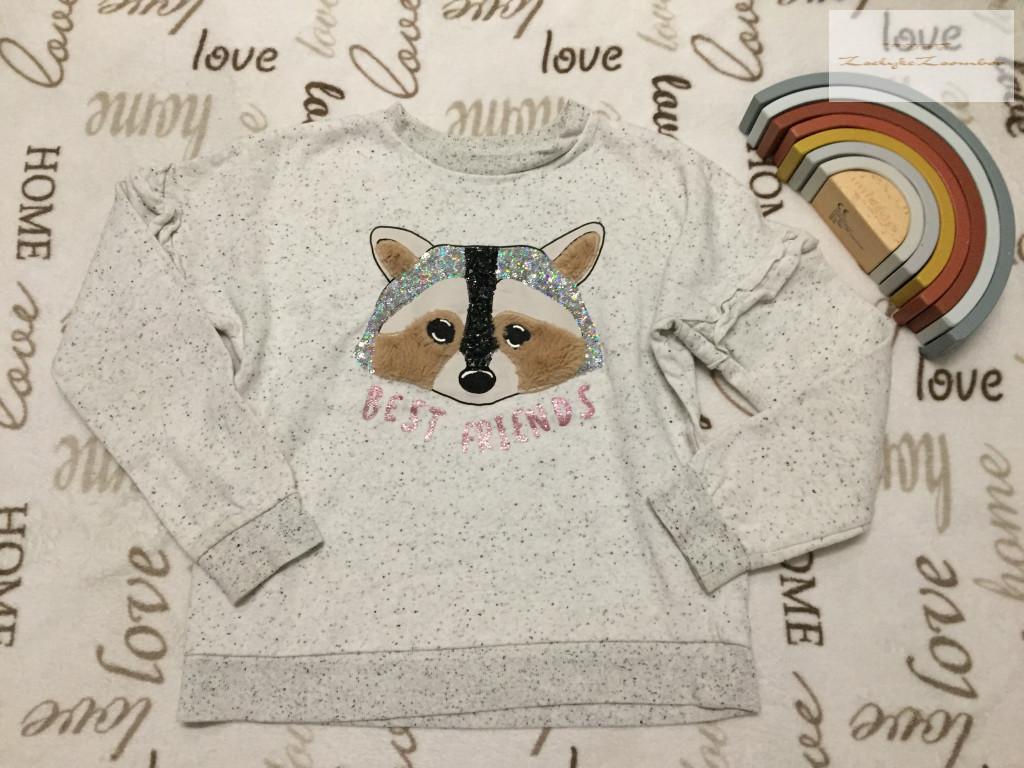C§A 11-12 év 146-152 cm szürke mosómaci fej mintás puha pamut lány felső/ pulóver - újszerű,hibátlan - th 52 cm, ujja 61 cm, mellnél 2 x 44 cm