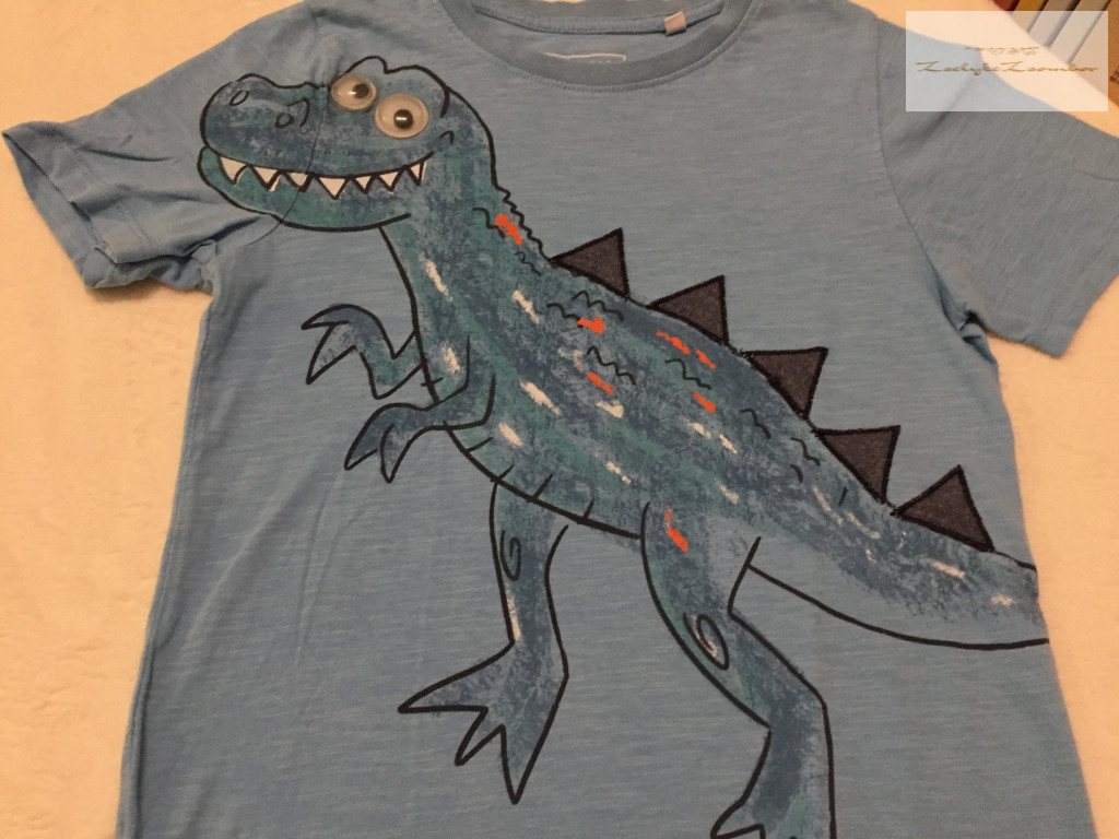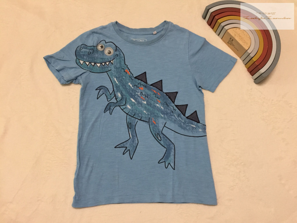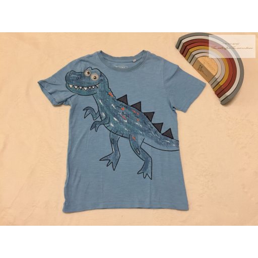 C§A 7-8 év 128 cm kék, dinó mintás pamut fiú felső - újszerű,hibátlan