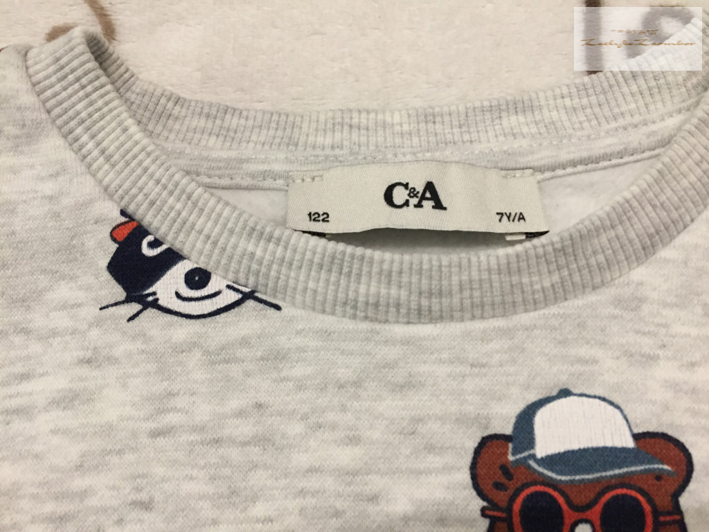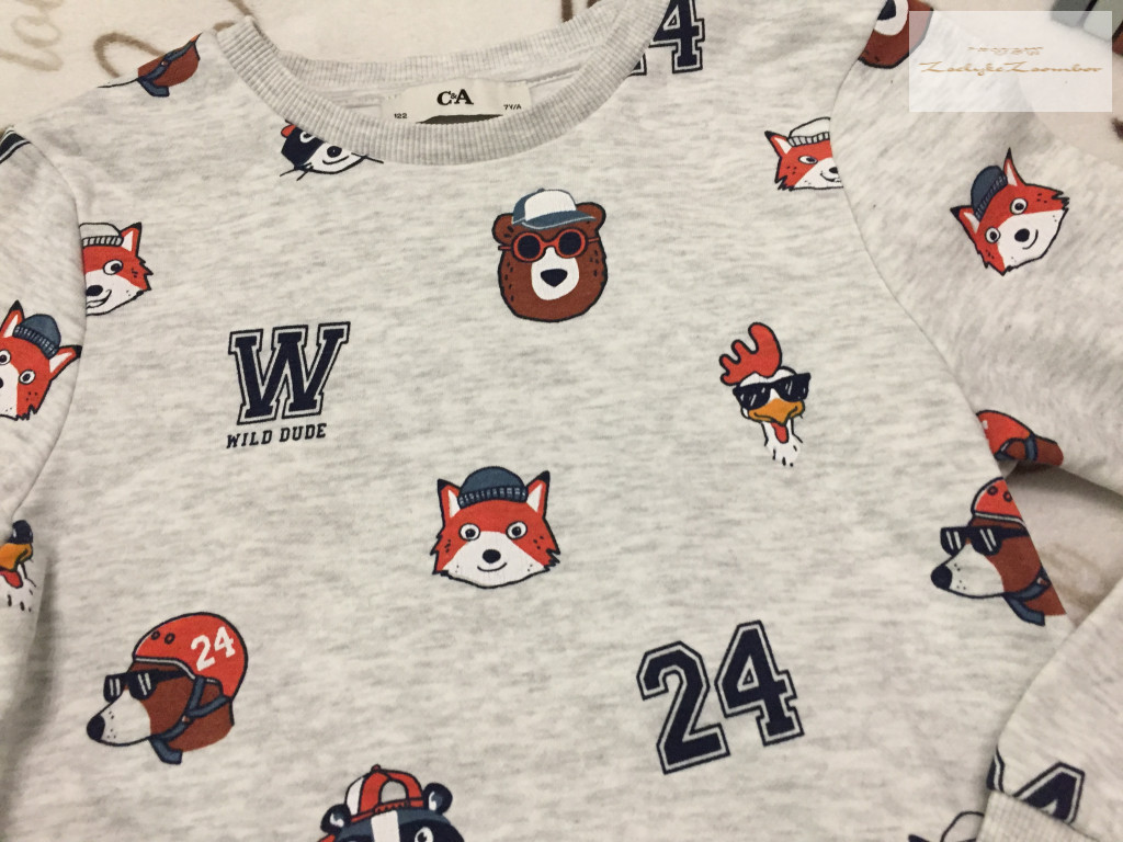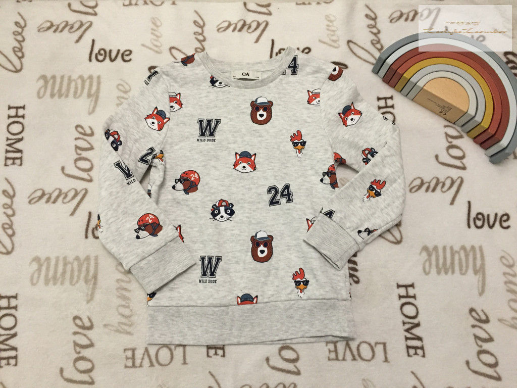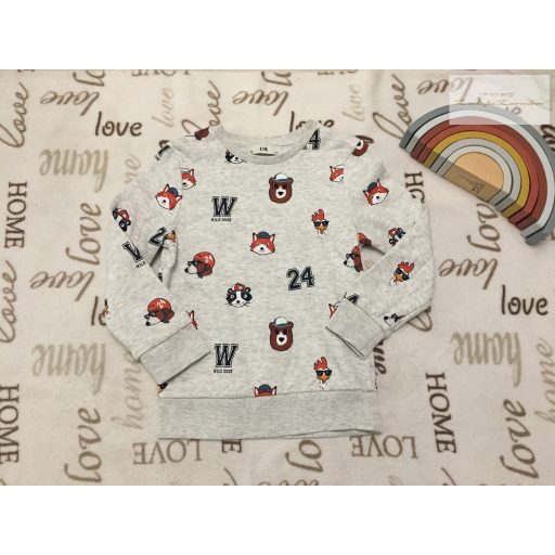 C§A 7 év 122 cm szürke, állat fej mintás pamut fiú felső / pulóver - újszerű,hibátlan - th 49 cm, v-v 32 cm, ujja 43 cm