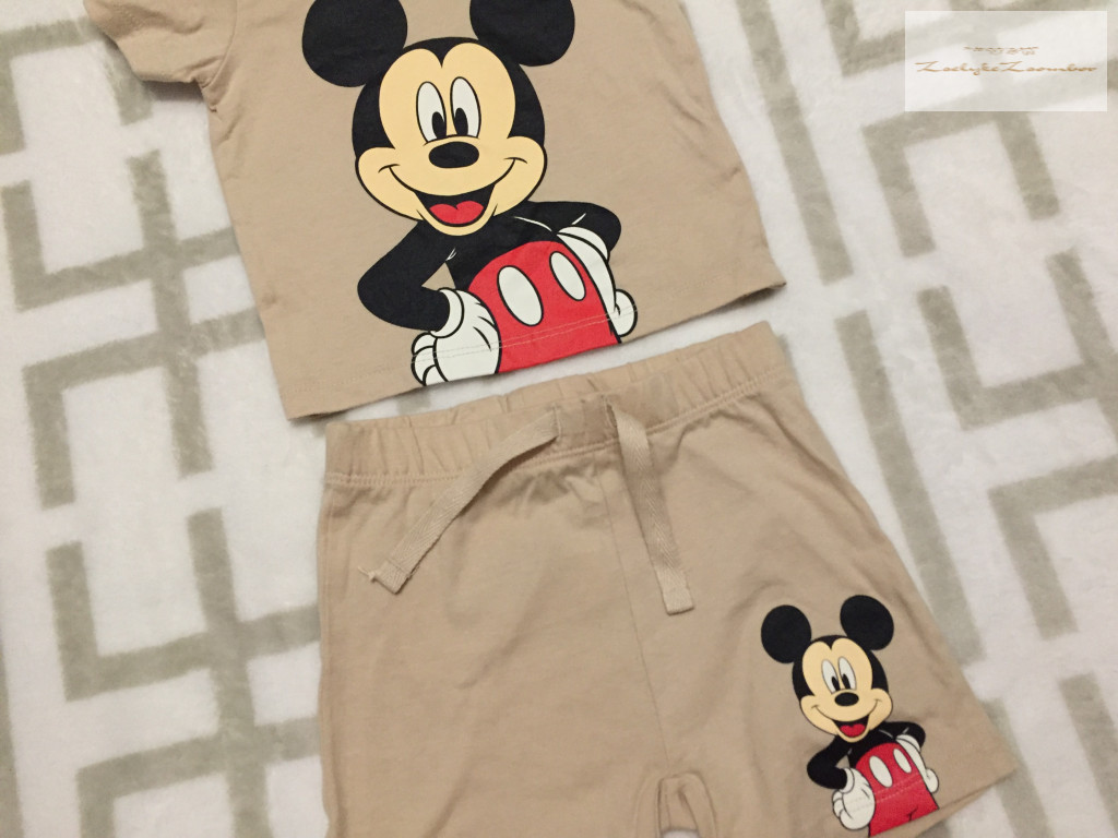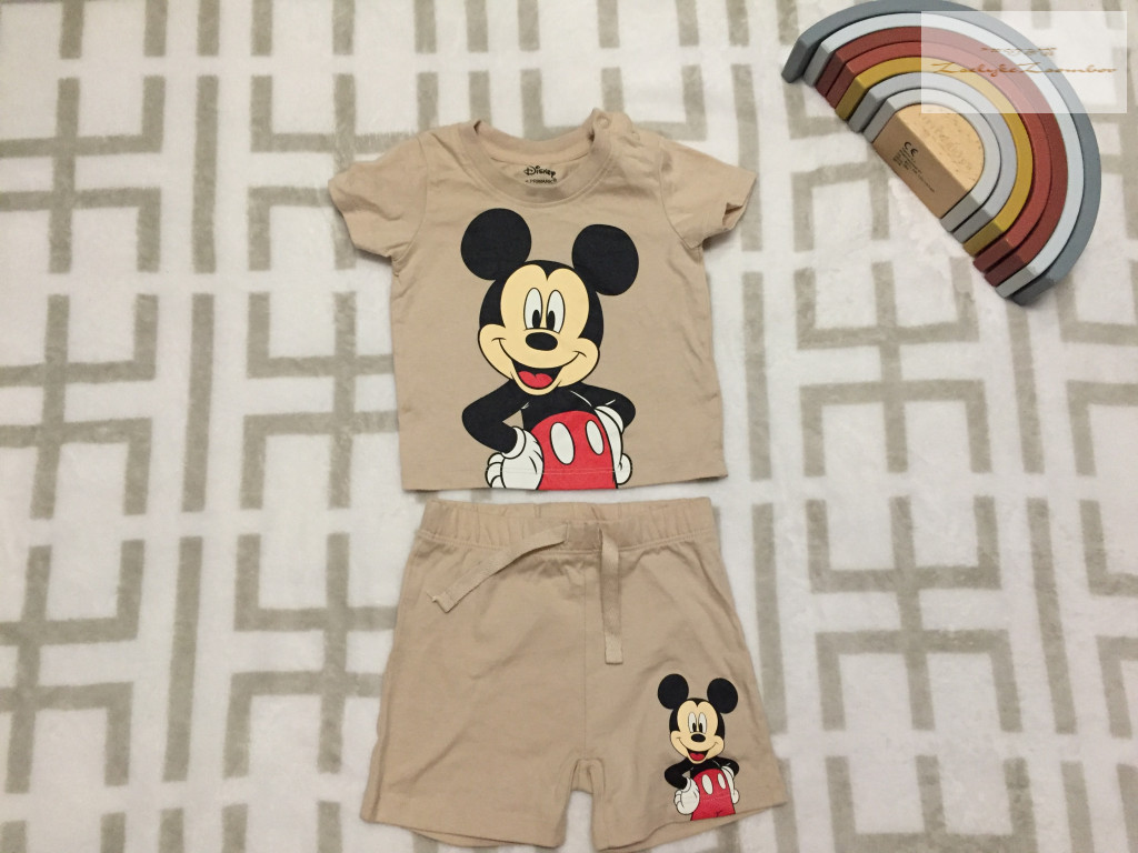 Disney at Primark 3-6 hó 62-68 cm barna, Mickey mintás vékony pamut fiú felső és rövidnadrág szett - újszerű,hibátlan