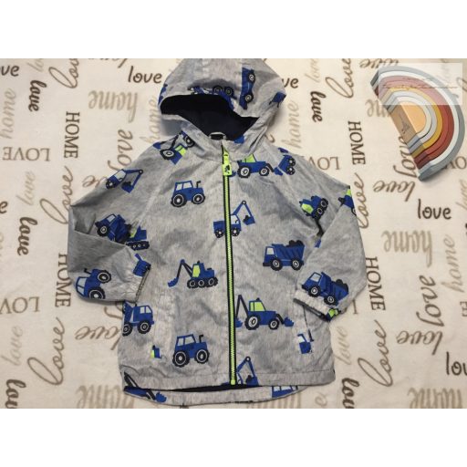 F§F 6-7  év 116-122 cm szürke, kék - sárga munkagép mintás polár béléses fiú átmeneti kabát- újszerű, hibátlan