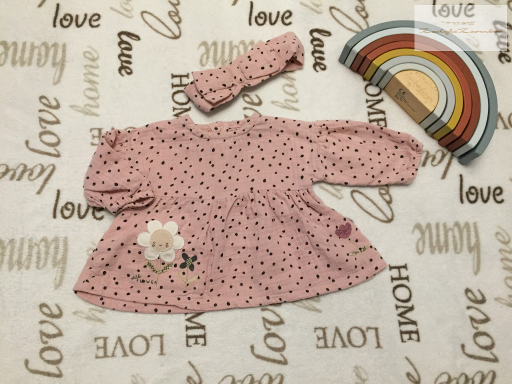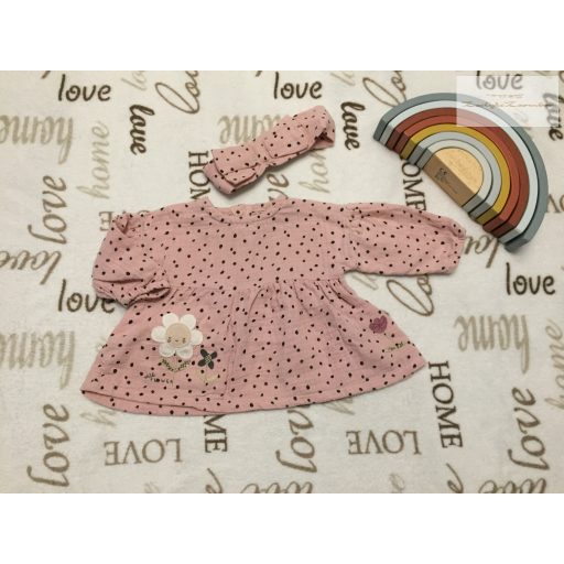 George 0 - 3 hó 56 -62 cm rózsaszín pöttyös, virágmintás puha pamut lány felső és hajpánt-új, csak lecímkézve