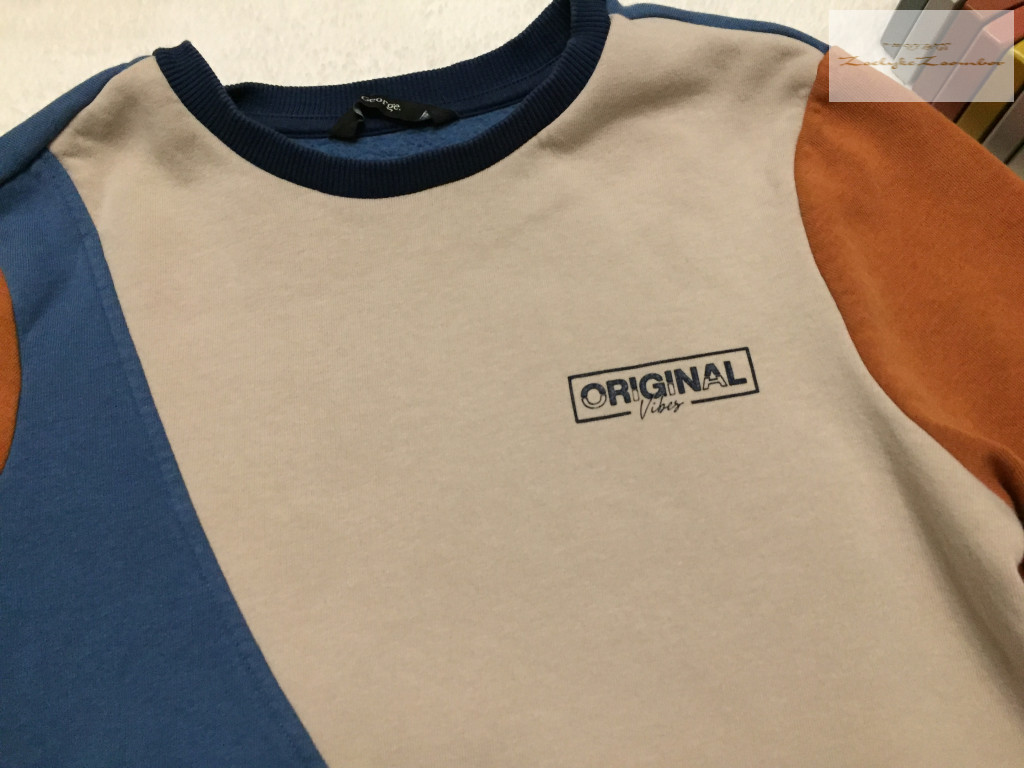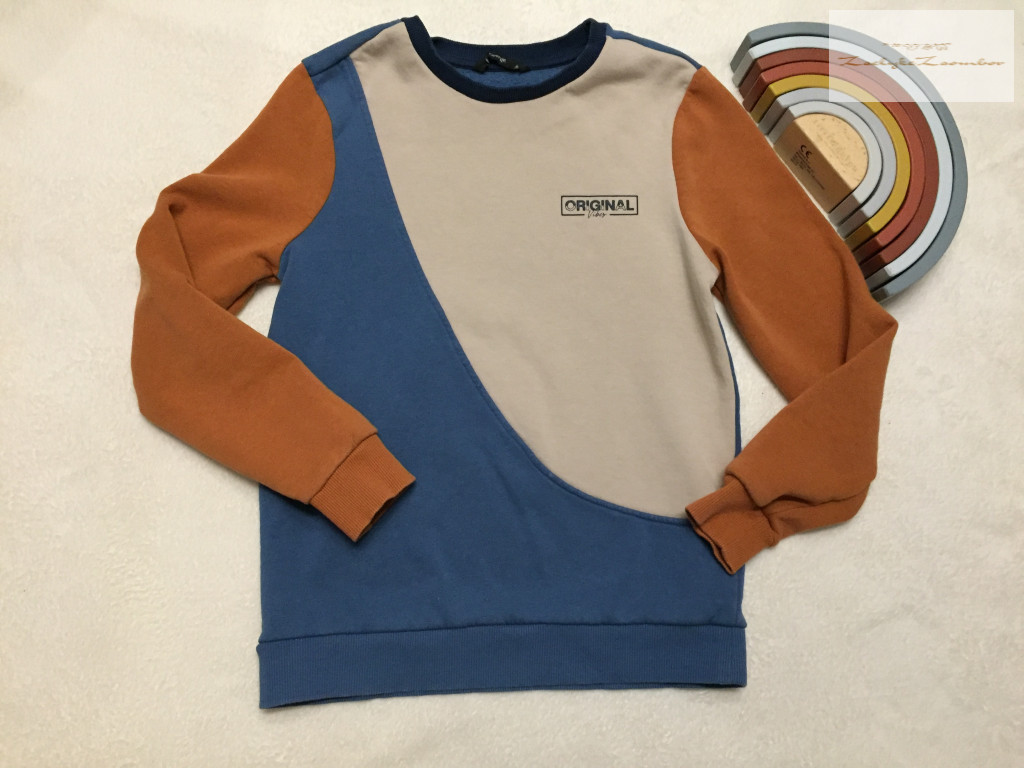 George 10-11 év 140-146 cm barna- -bézs-kék pamut fiú felső/ pulóver - újszerű,hibátlan - th 58 cm, v-v 37 cm, ujja 55 cm