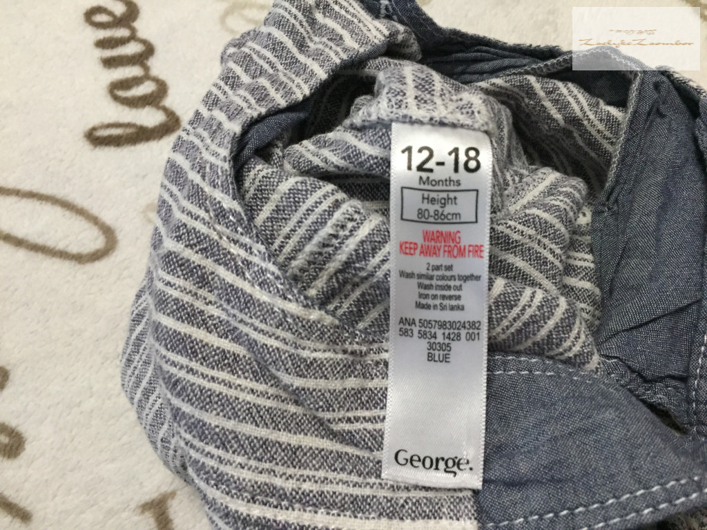 George 12  - 18 hó 86 cm  kék . - fehér csíkos puha vékony  lenvászon  fiú kantáros rövidnadrág  - újszerű,hibátlan