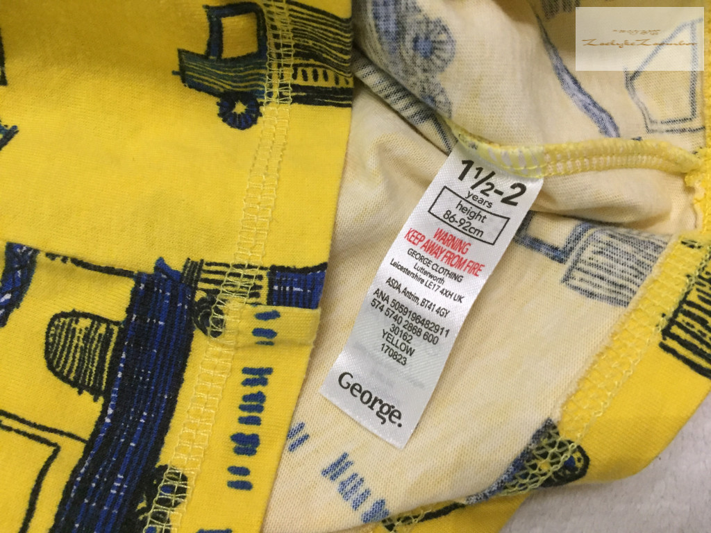 George 18 - 24 hó 86 - 92 cm sárga, kék munkagép mintás pamut fiú felső - újszerű,hibátlan - th 38 cm, v-v 24 cm, ujja 31 cm