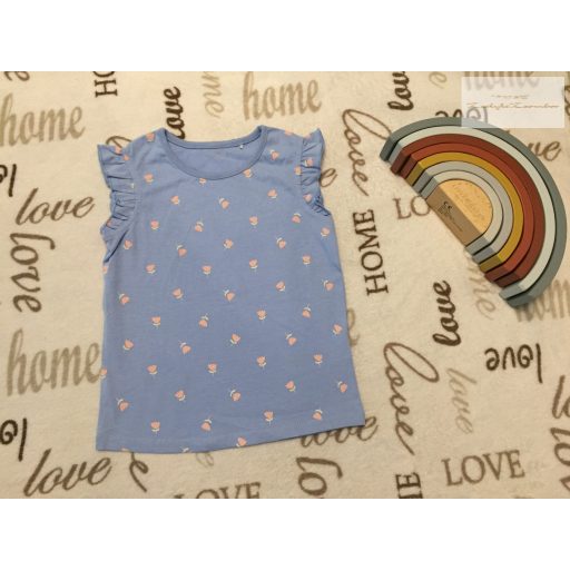 George 18 - 24 hó 86 - 92 cm világoskék , rózsaszín virágmintás pamut lány felső -új, szettet bontottam - th 38 cm, v-v 25 cm