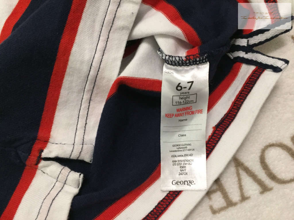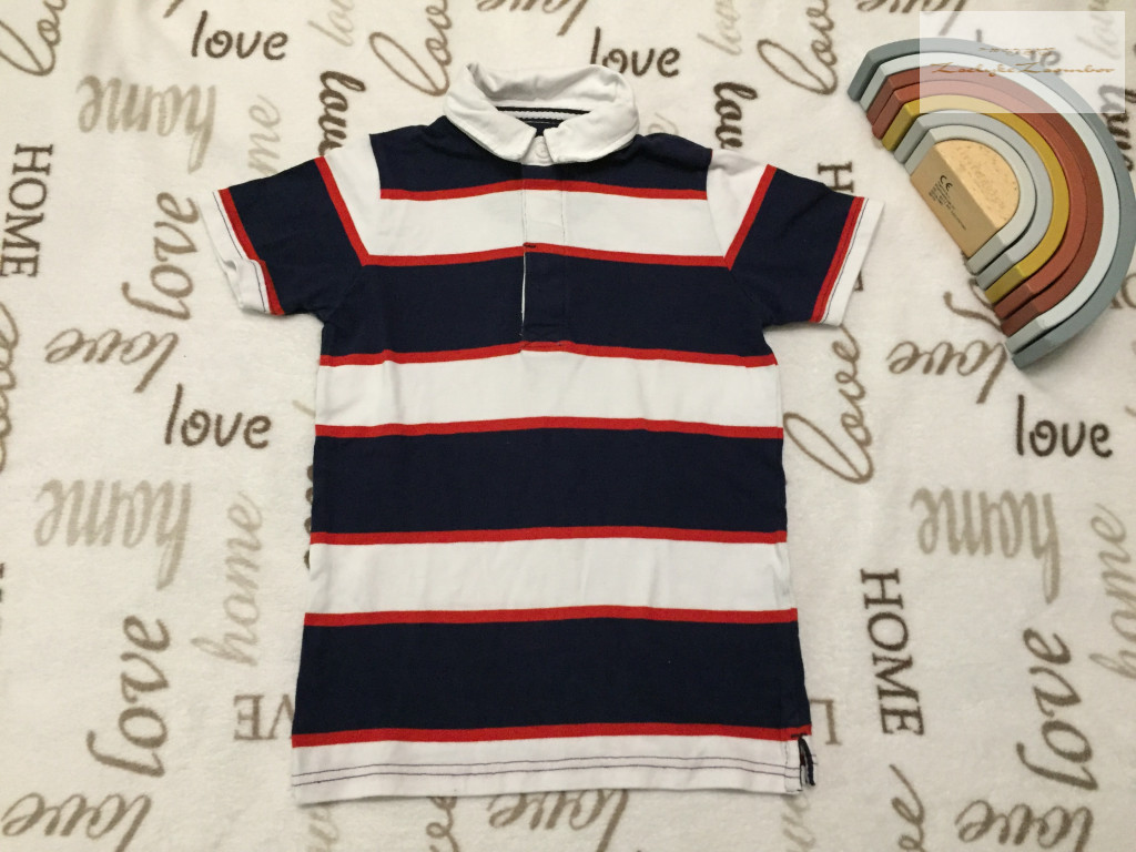 George 6-7  év 116-122 cm színes csíkos galléros pamut fiú felső - újszerű,hibátlan