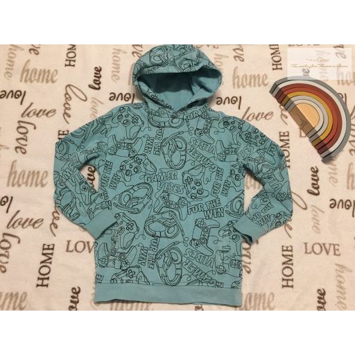George 7-8 év 122-128 cm kék, Gamer feliratos, konzol mintás pamut fiú felső/pulóver- újszerű, hibátlan - th 52 cm, v-v 42 cm, ujja 42 cm