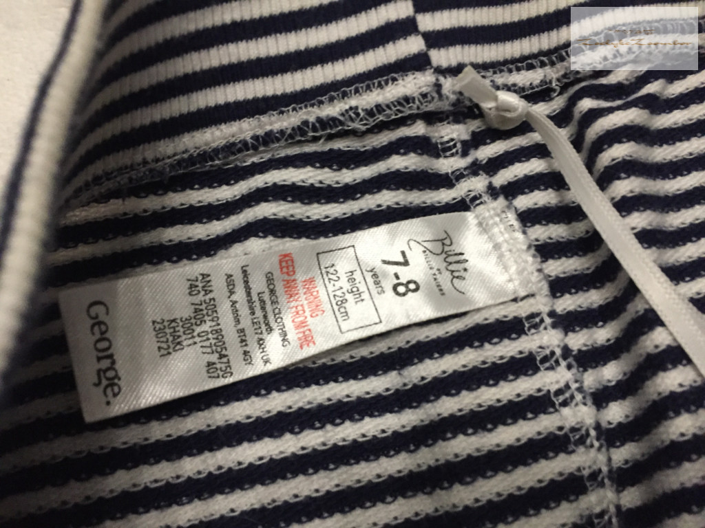 George 7-8 év 122-128 cm kék csíkos vékony pamut fiú nadrág- újszerű, hibátlan - th 75 cm, derék 54 cm