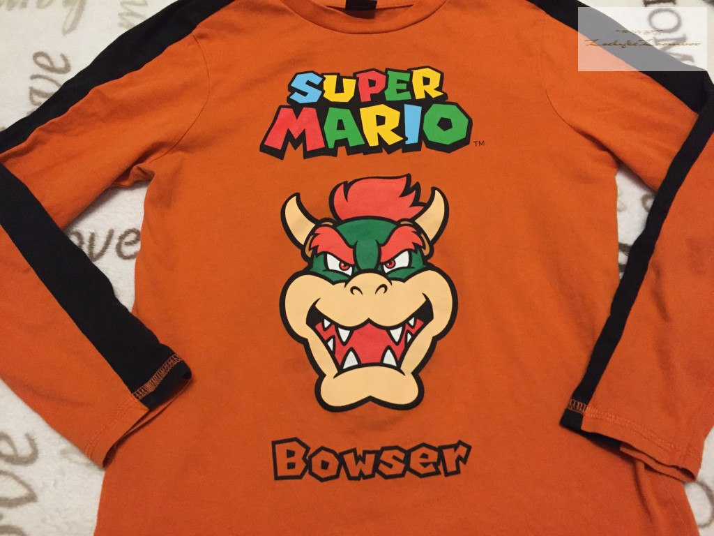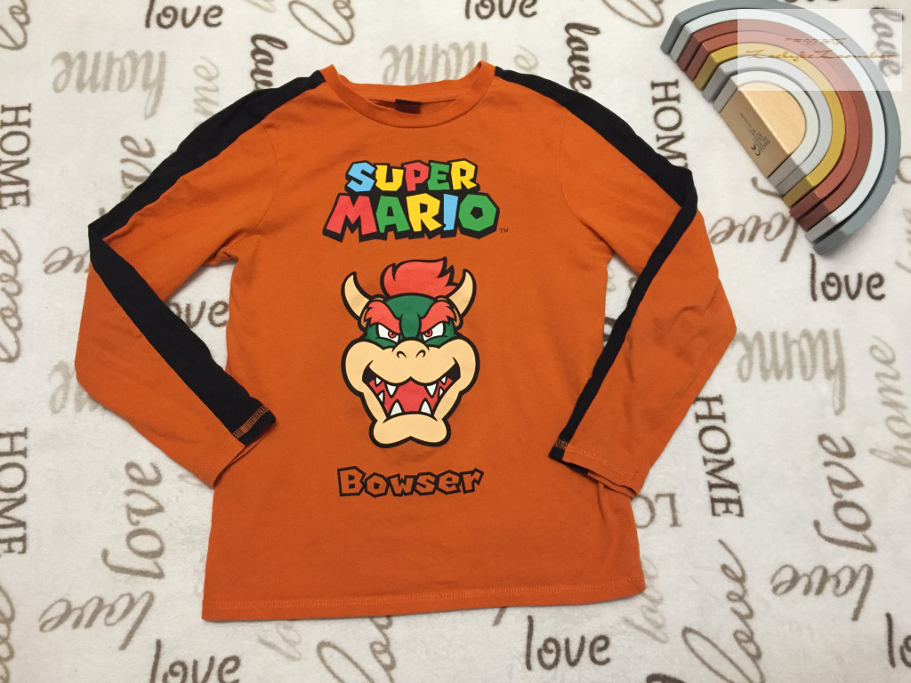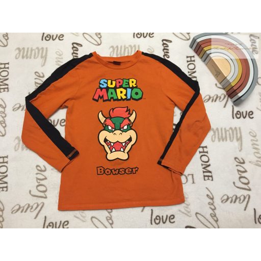 George 8-9 év 128 -134 -cm fekete - narancssárga, Super Mario feliratos pamut fiú felső- újszerű,hibátlan - th 51 cm, v-v 31 cm, ujja 45 cm