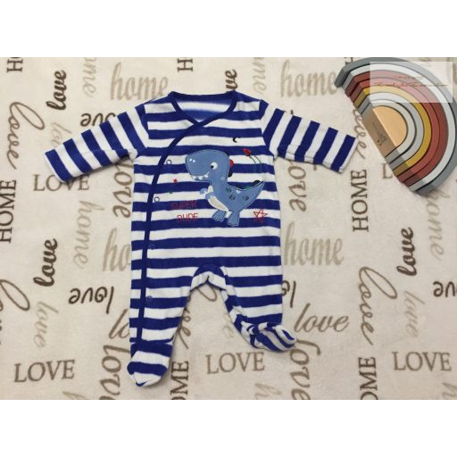 George újszülött 50 - 56 cm 4,1 kg kék csíkos, dinó mintás puha polár fiú tipegő/ rugdalózó  újszerű,hibátlan