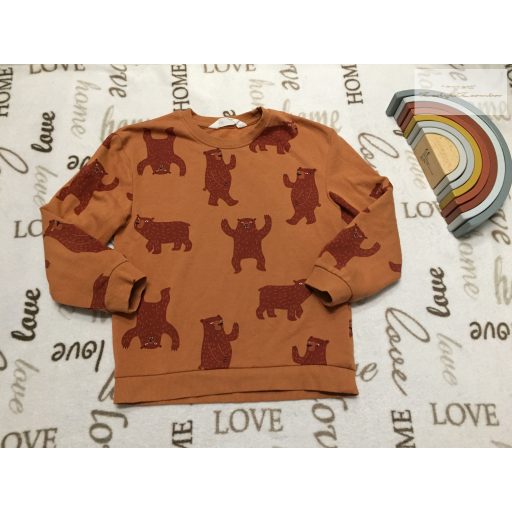 H§M 6-7 év 122 cm barna, maci mintás hurkolt pamut fiú felső/ pulóver - újszerű,hibátlan