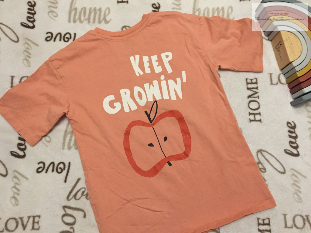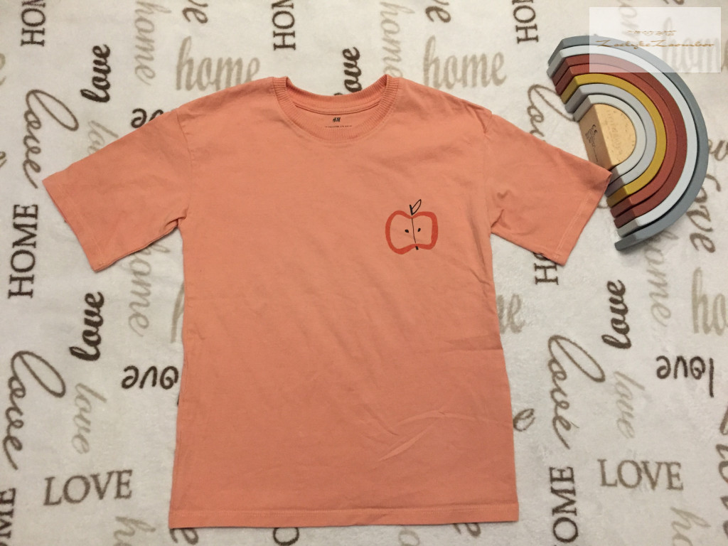 H§M 6-8 év 122-128 cm alma mintás-hátul feliratos pamut felső- újszerű,hibátlan - th 52 cm, v-v 39 cm