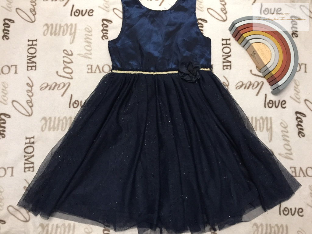 H§M 8-9 év 134 cm sötétkék - arany, tüll szoknyás alkalmi/ elegáns lány ruha- újszerű,hibátlan