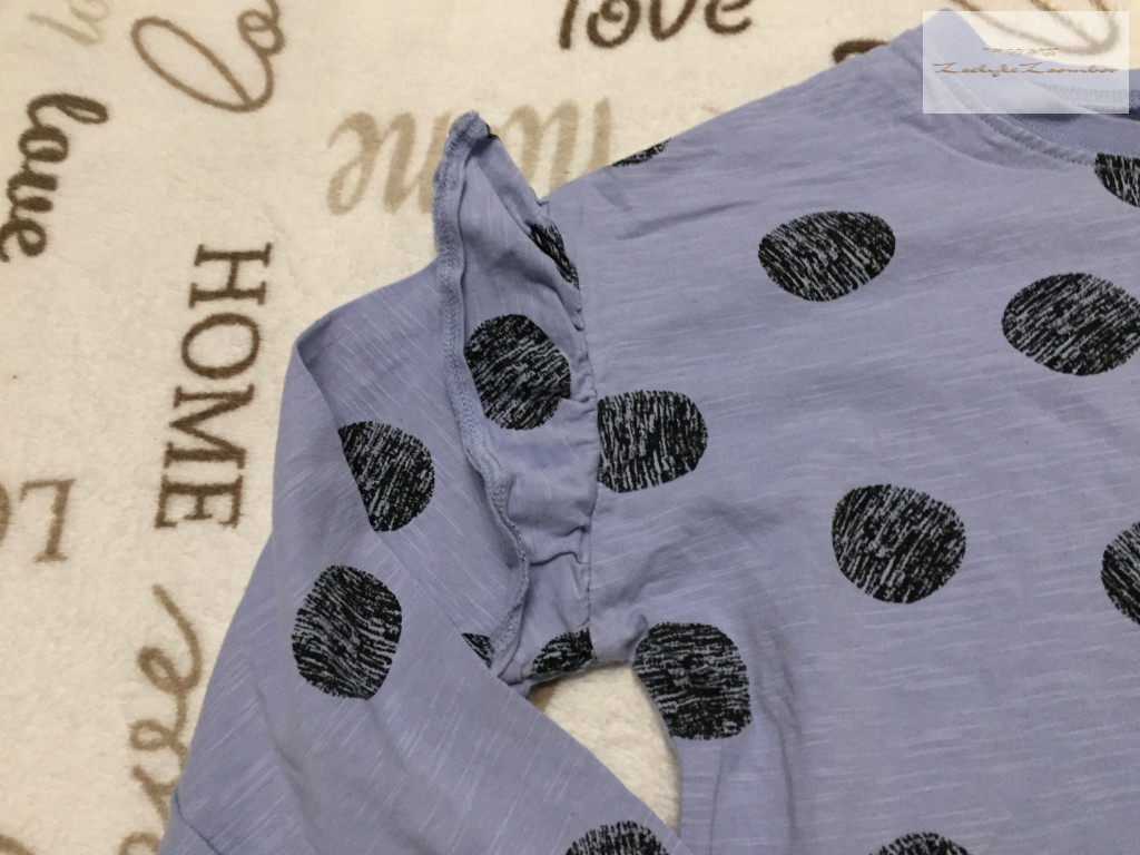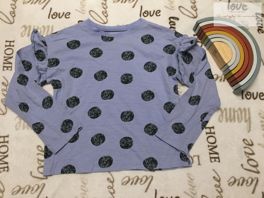 John Lewis 11 év 146 cm lila, nagy pöttyös-fodros pamut lány felső- újszerű,hibátlan - th 49 cm, ujja 59 cm