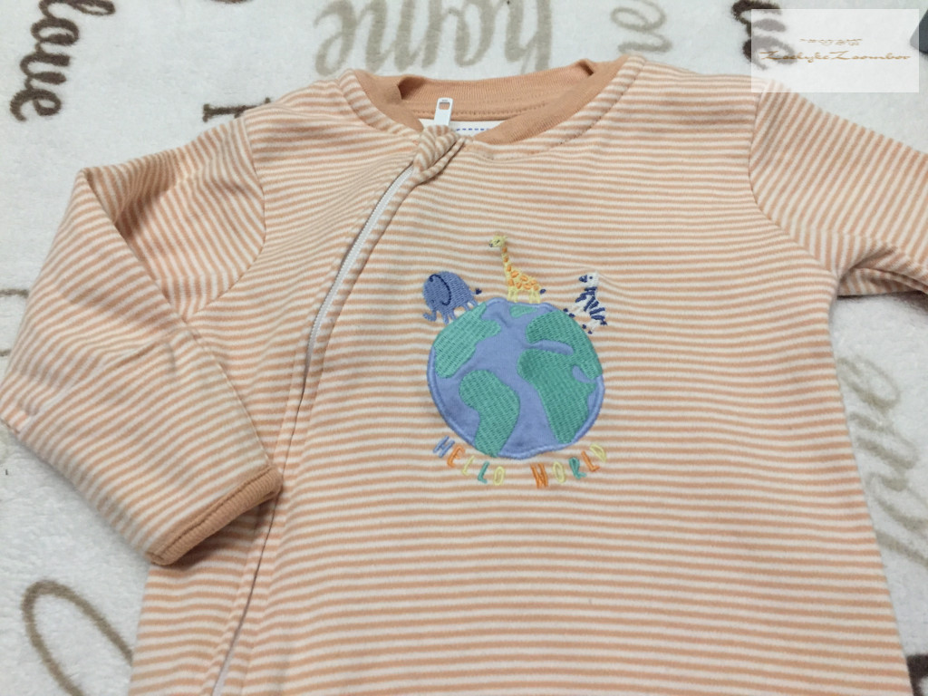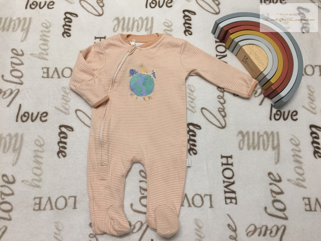 Jojo Maman Bébé 0-3 hó csíkos, színes elefánt-zsiráf- zebra mintás puha pamut fiú rugdalózó - újszerű,hibátlan