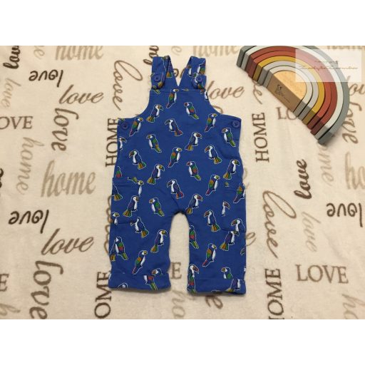 Jojo Maman Bébé 3- 6 hó 62-68 cm kék, színes papagáj mintás  pamut fiú kantáros nadrág - újserű,hibátlan