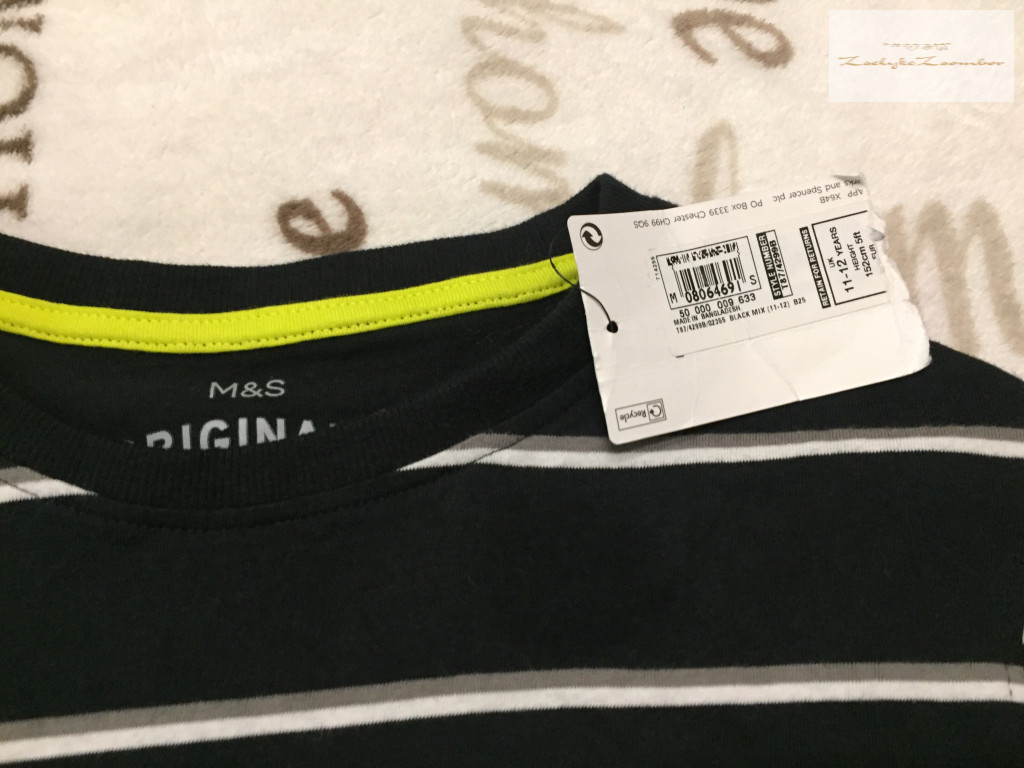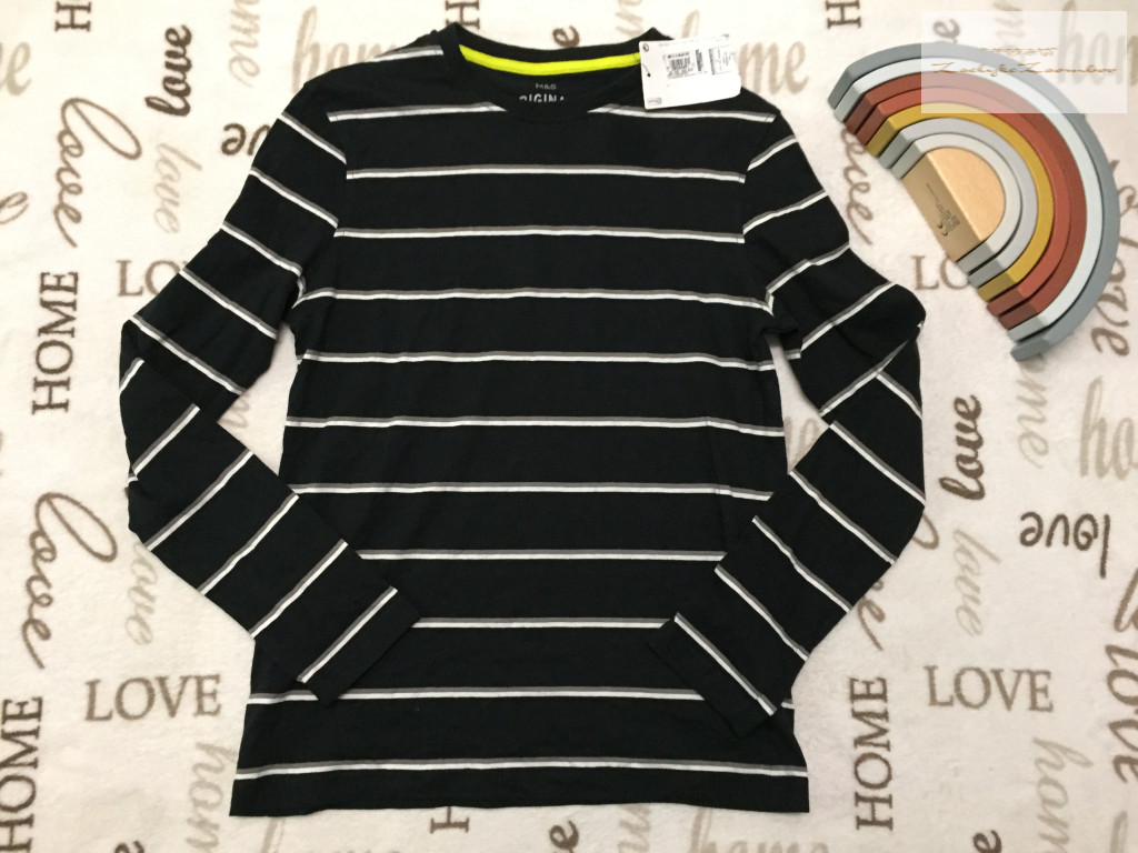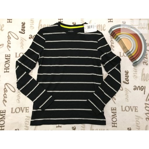 M§S 11-12 év 152 cm fekete-szürke-fehér csíkos pamut fiú felső új, címkés