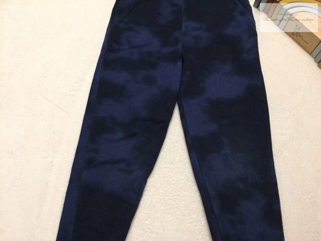 M§S 6-7 év 122 cm kék - fekete mintás puha pamut fiú nadrág/ jogger-  újszerű,hibátlan