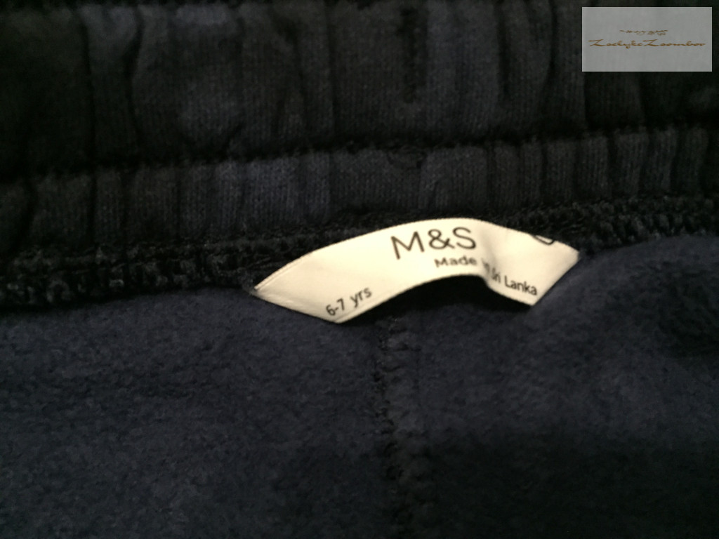 M§S 6-7 év 122 cm kék - fekete mintás puha pamut fiú nadrág/ jogger- újszerű,hibátlan - th 70 cm, derék 56 cm, aktív