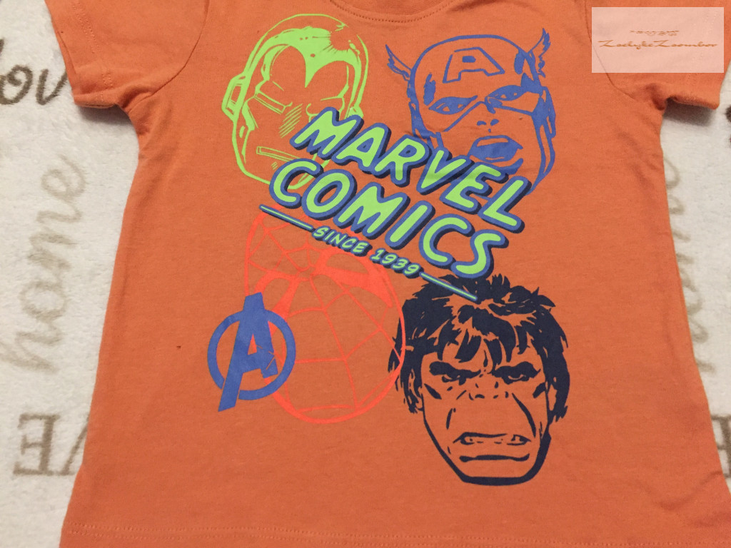 Marvel 18-24 hó 86-92 cm narancssárga,  Superhősök mintás pamut fiú felső új, címkés