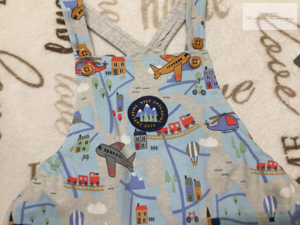 Mini Cuddles 12-18 hó 80-86 cm világoskék, repülő-helikopter-város mintás pamut fiú kantáros rövidnadrág- újszerű,hibátlan - váll - ülep 47 cm