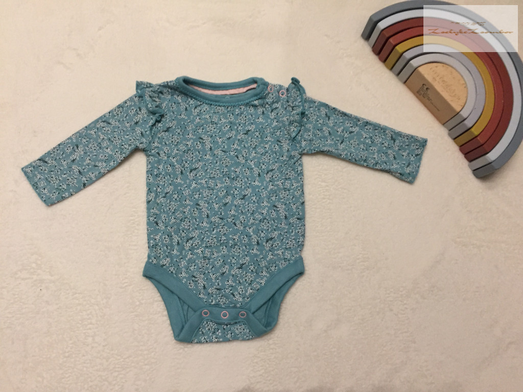 Mothercare 1-3 hó 6,5 kg zöld, fodros-virágmintás pamut lány body - újszerű,hibátlan