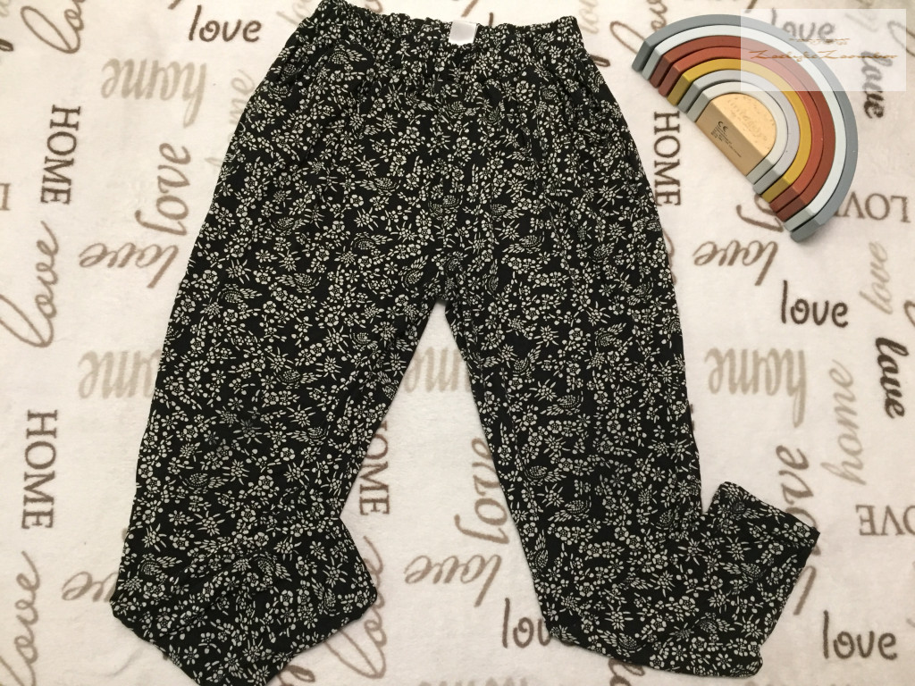 Next 12 év 152 cm fekete, fehér virágmintás pamut lány nadrág újszerű - térdén nagyon pici kopás-felvéve nem látszik - th 86 cm, derék 62 cm