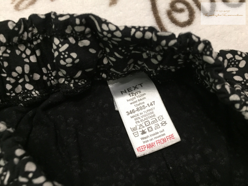 Next 12 év 152 cm fekete, fehér virágmintás pamut lány nadrág újszerű