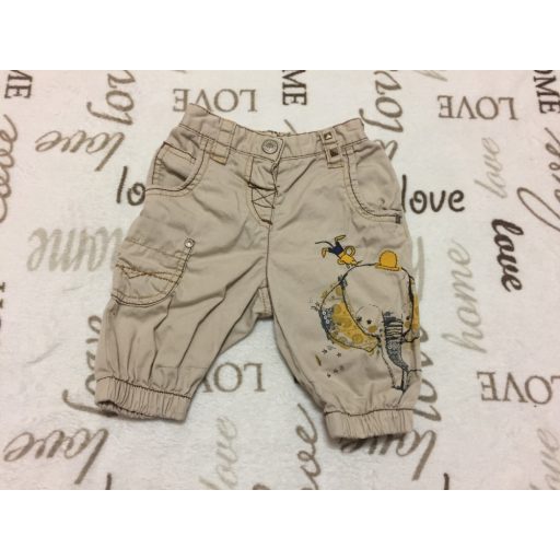Next 9 -12 hó 80 cm világosbarna, elefánt mintás vékony puha farmer lány térdnadrág --újszerű,hibátlan
