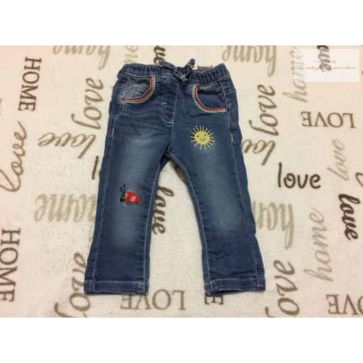 Nutmeg 3-6 hó 62-68 cm napocska - katica mintás puha pamutos farmer anyagú lány nadrág- újszerű,hibátlan
