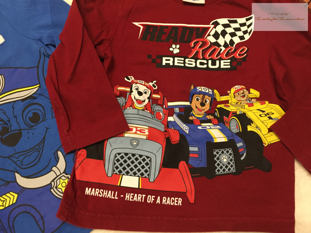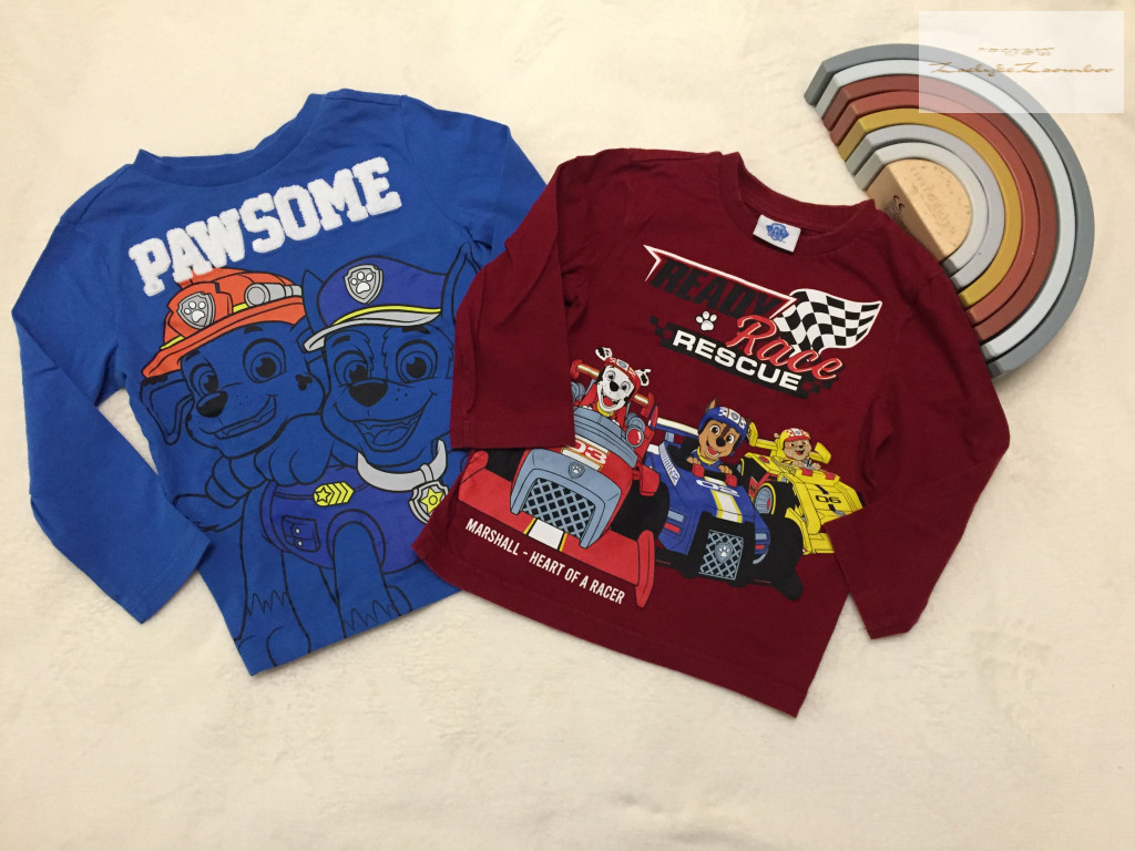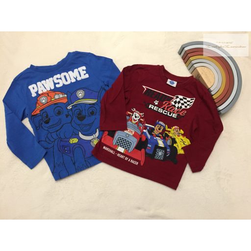 Paw Patrol 18-24 hó 86-92 cm kék - bordó, Chase-Robble-Marshall mintás pamut fiú felső-újszerű,hibátlan-Mancs őrjárat - th 37-38 cm, v-v 26-27 cm, ujja 28-30 cm