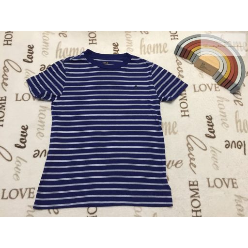 Polo Ralph Lauren 7 év kék - fehér csíkos, vékony pamut fiú felső - újszerű,hibátlan - th 51 cm, v-v 33 cm