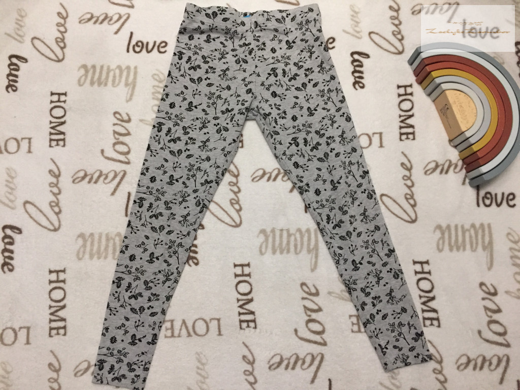 Primark 8-9 év 128-134 cm szürke, fekete virágmintás pamut lány legging- újszerű,hibátlan - th 67 cm, derék 54 cm
