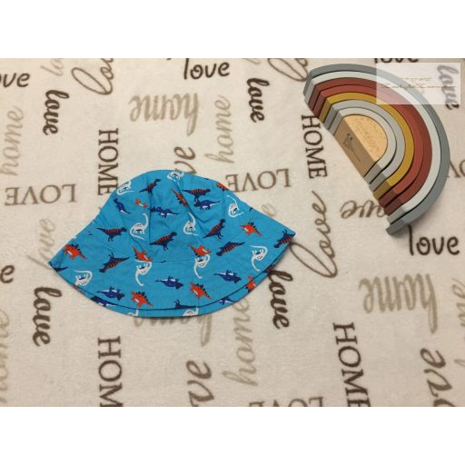 TU 10-13 év 56 cm kék, színes dinó mintás vékony nyári fiú kalap - újszerű,hibátlan
