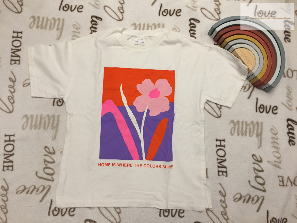 Zara 9 év 134 cm fehér, virágmintás - feliratos pamut lány felső - újszerű,hibátlan